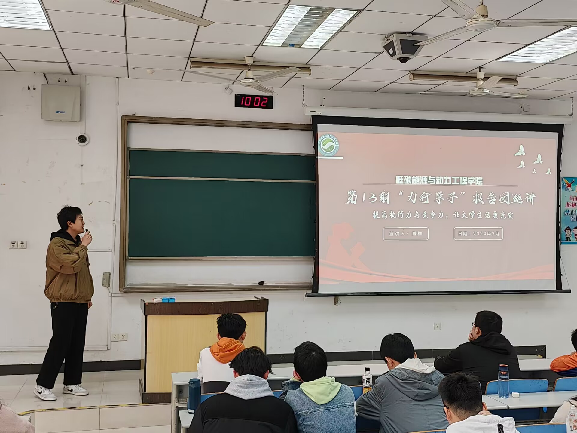 于博一B101教室举行以“奉献是如何让人成长的”为主题的“力行学子”报告团宣讲会。此次宣讲会邀请了动力工程2021级研究生肖桐与能动2021级本科生李冷静作为主讲人,2022级和2023级各班班长、团支书及第64期积极分子参加。