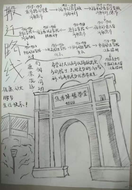 本次活动要求参赛选手以矿大建校以来的搬迁路线为基本内容,结合自身感受以及对矿大未来的展望,创作出独具匠心的作品。初选后,评委根据参赛作品的创意性和精美程度进行打分,最终评选出一等奖2名、二等奖4名、三等奖6名。参赛者们表示,这次活动不仅让他们更深入地了解了学校的历史和文化,还培养了他们的艺术创造力。能动2023级孙建龙同学分享道:“在绘制矿大旧路的过程中,我仿佛穿越了时空,与历史上的学者们一同行走在校园之中,这种感觉非常奇妙。通过这次比赛,我学到了很多关于色彩和构图的技巧,这是在平时课堂上接触不到的。”