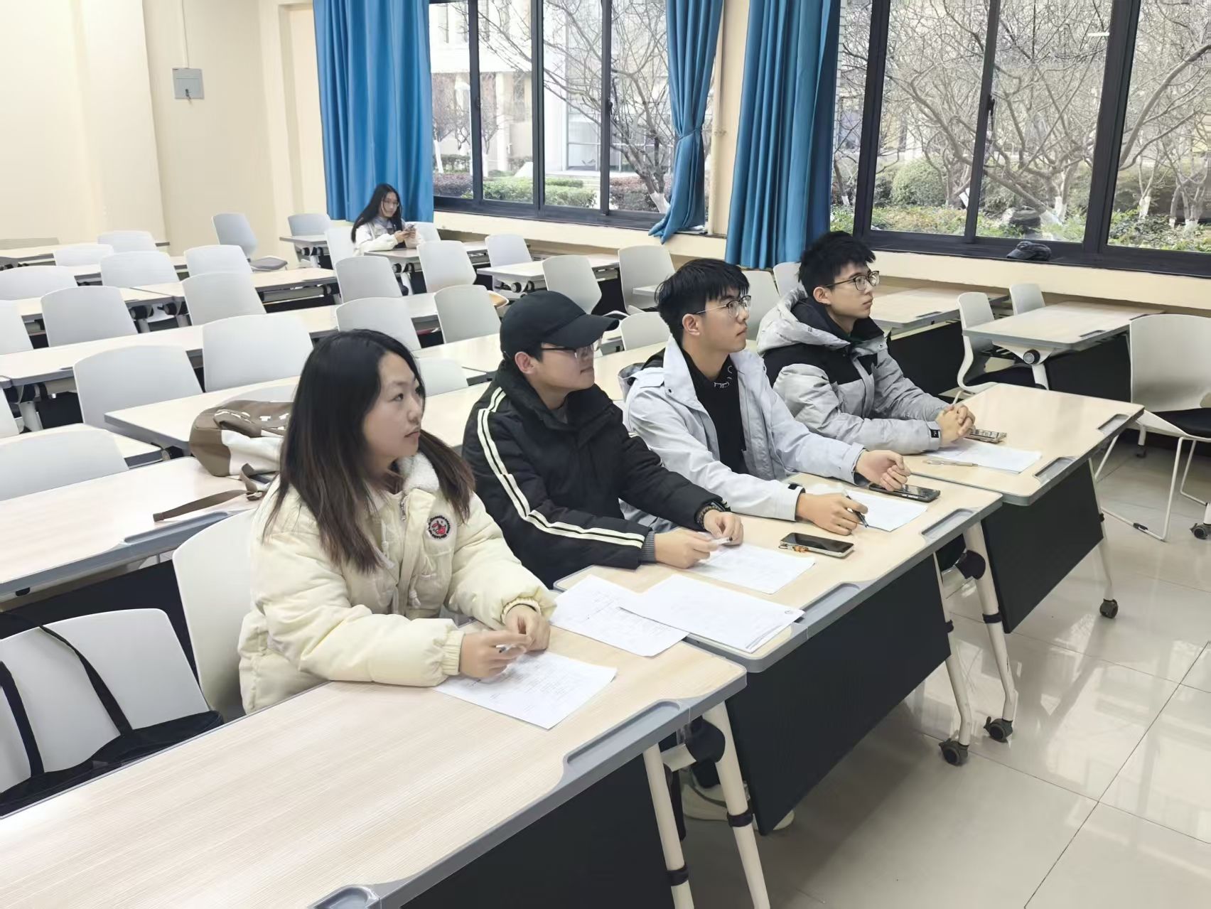 团委书记、24级专职辅导员王文礼,25级专职辅导员姜子岳及兼职辅导员担任评委,各班代表通过PPT展示志愿方案,经评审筛选,25级8班等7支代表队伍成功进入实践环节。