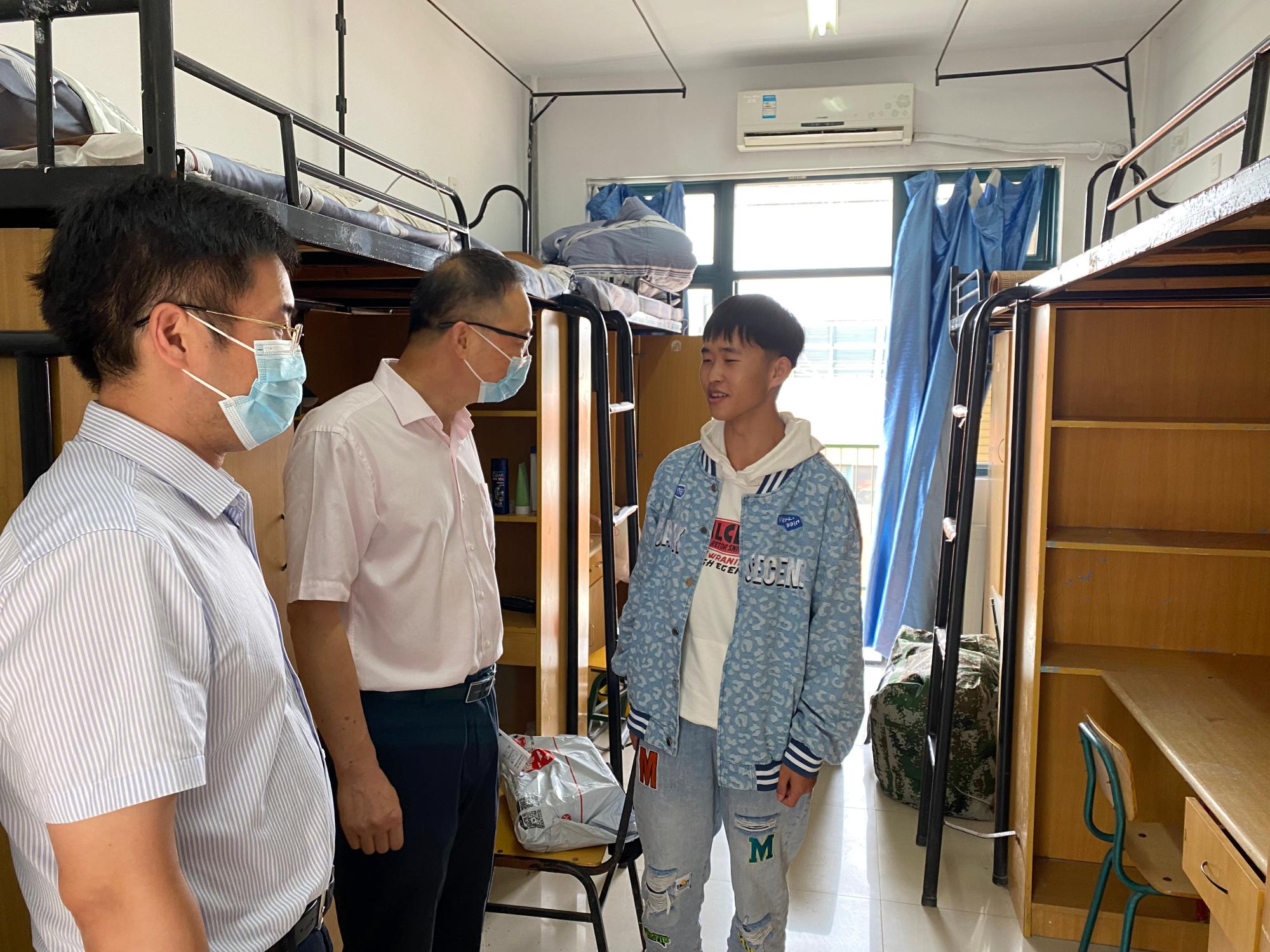 党委书记伍小杰、副书记于基伯、副院长徐瑞东与新生辅导员、班主任一行到新生宿舍实地走访,在中秋佳节到来之际为新生送去关心和问候。