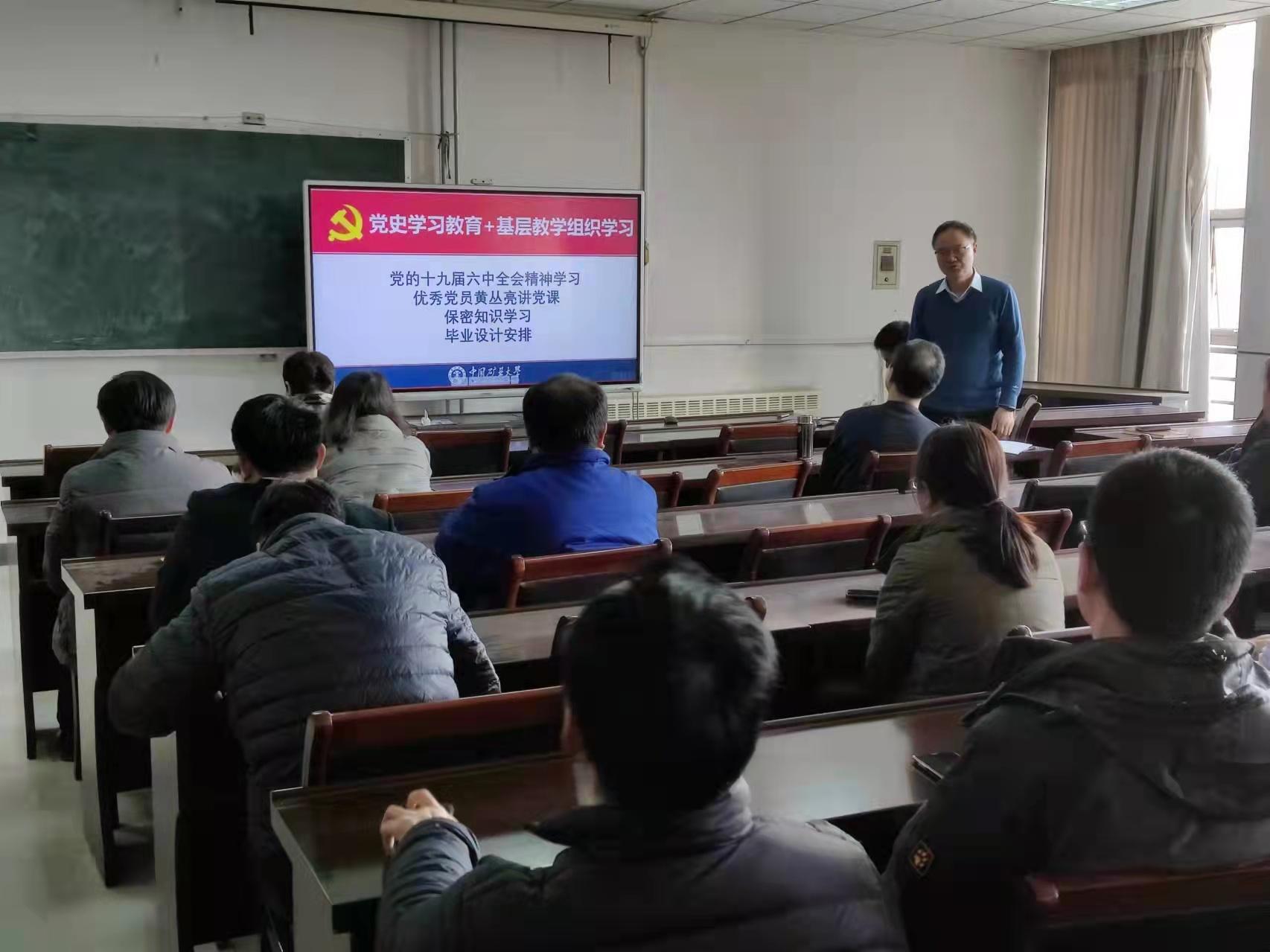 优秀党员黄丛亮结合党史学习给大家讲了一堂题为《论党员的文风——向毛主席学习写作》的党课,就党员教师如何写作与如何开展科研发表了独到的见解。黄老师指出科研本质上就是调查研究,没有调查,就没有发言权,教师要深入科研一线,了解实验中的第一手数据;同时,教师要提高文字效率,让读者能够读懂。活动中,支部组织全体党员学习了《高校保密警示教育片》并开展了讨论。大家普遍认识到增强保密意识的必要性和重要性,工作以及生活中都要注意保密,不要有侥幸心理,不要感情大于原则,同时大家还认为需要加强对学生保密意识的教育。活动后,能动系主任王利军布置了毕业设计等相关事宜。