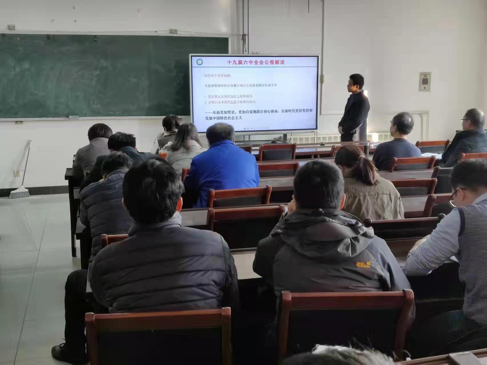 教师第五党支部书记王焕光领学十九届六中全会精神