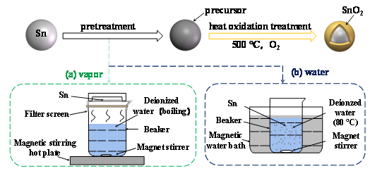 Fig. 1 Experiment procedures for synthesizing Sn@SnO2core-shell MEPCMs. (a) vapor pretreatment and (b) water pretreatment.