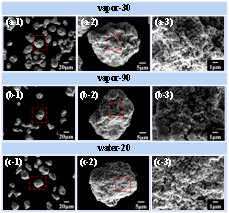 Fig. 2 SEM images of the capsules after 100 melting-freezing cycles. (a) vapor-30, (b) vapor-90 and (c) water-20.