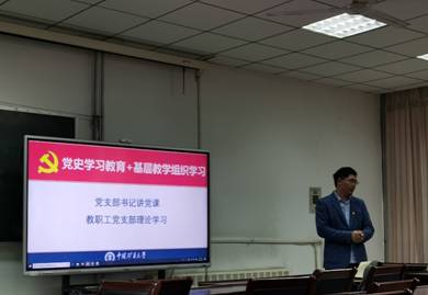 教师第三党支部书记赵培涛主持研讨会并进行理论学习教育