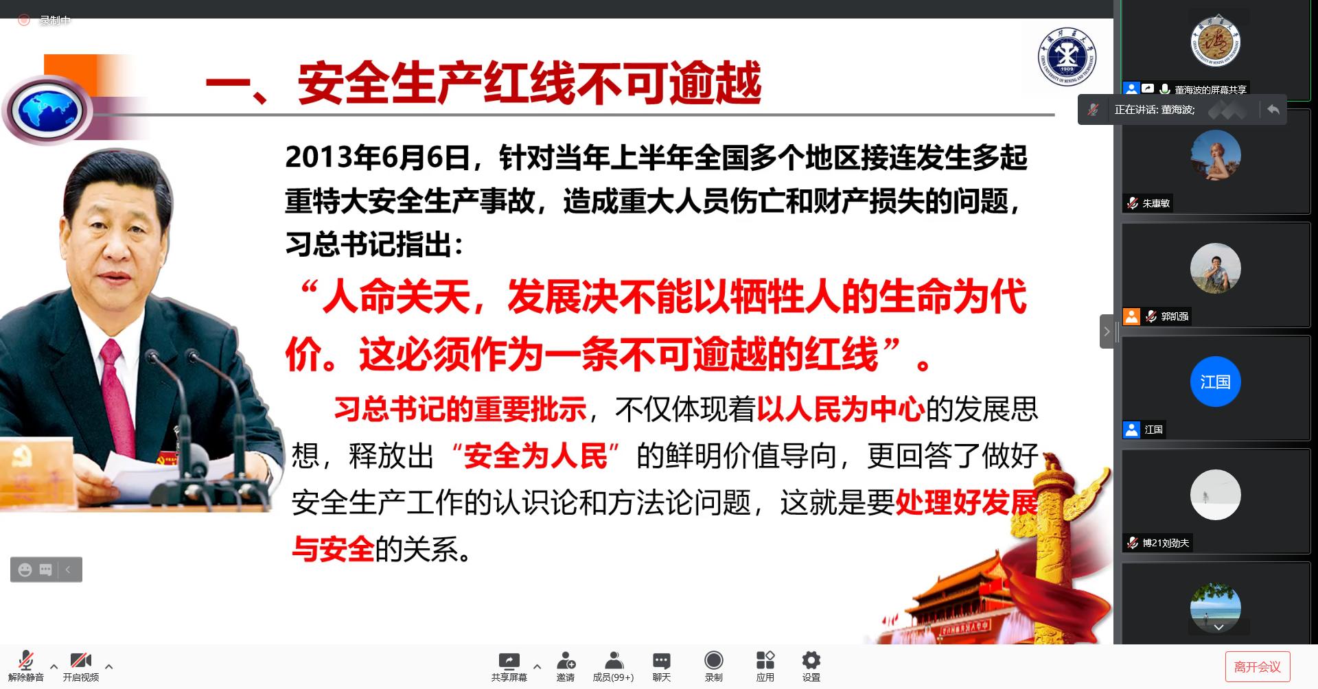 实验室董海波老师,以安全第一,生命至上,做实验室安全的践行者为题。从安全生产红线不可逾越、高校实验室安全的重要性、实验室安全规则与制度、实验室安全工作的体会等方面,结合成人游戏