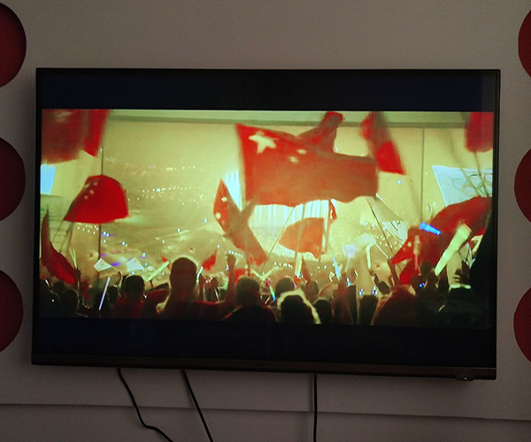 孔同学在观看《我和我的祖国—你好北京》