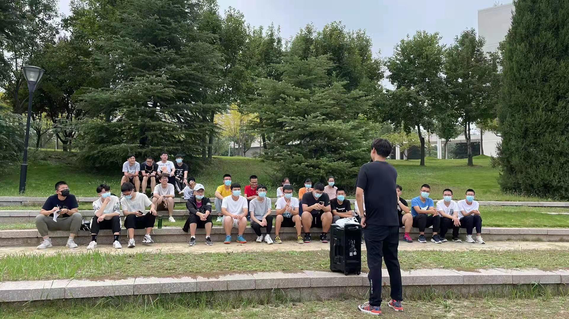 根据疫情防控要求,各班级班会在户外进行,同学们在班主任的带领下熟悉校园,了解教学楼、成人游戏