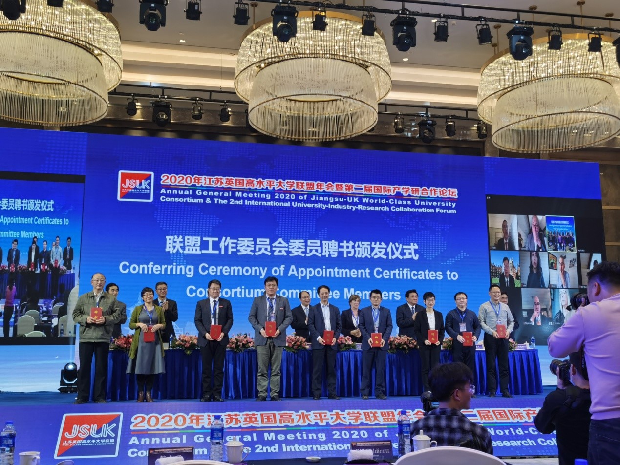 陈昊教授受邀出席本次大会,并被聘为江苏英国高水平大学联盟产学研合作委员会委员。