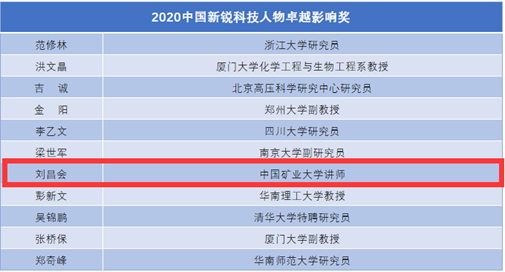 刘昌会老师荣获“2020中国新锐科技人物卓越影响奖”。