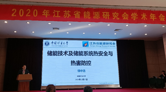 副院长饶中浩教授受邀作了题为“储能技术及储能系统热安全与热害防控”的大会报告。霍宇涛老师获得2020年度江苏省能源研究会能源科技创新奖-青年能源科技奖二等奖,并参加了授奖仪式。