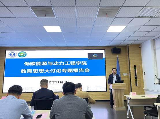 与教育教学体系优化”报告,实验中心主任管新蕾作“创新实验实践环节,培养卓越工程人才”报告,学生工作办公室主任丁建范作“多维度促进师生深度融合,全过程助力学生全面发展”报告,能源与动力工程系主任张保生作“贯通·融合·协同:能源与动力工程国家级一流本科专业建设新格局”报告。