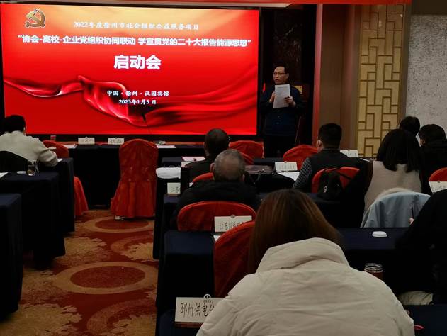 会议最后,徐州市社会组织综合党委副书记赵涛同志作总结发言,全面介绍了徐州市社会组织公益服务项目的设置初衷、发展历程和运营情况,希望高校、协会和企业党组织协同联动,整合链接三方资源,充分发挥党支部的战斗堡垒作用和党员的先锋模范作用,学宣贯党的二十大报告能源思想。