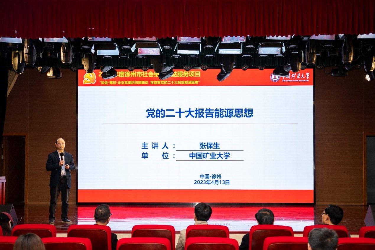 党委的领导下,积极学宣贯党的二十大精神,并联合徐州市电力行业协会、江苏能源投资有限公司、国网江苏徐州公司党组织,共同申报并获准了2022年度徐州市社会组织公益服务项目“协会-高校-企业党组织协同联动,学宣贯党的二十大报告能源思想”。该项目通过高校、协会和企业党组织协同联动,将党建工作和业务工作深度结合,积极推动能源行业企业中层人员和社区退休人员完整、准确、全面、系统地学宣贯党的二十大报告能源思想,实现打造党建引领服务品牌。
