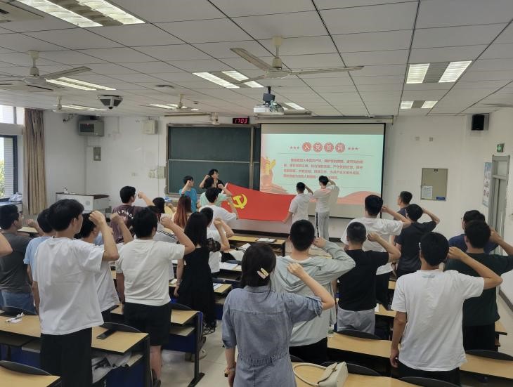 在博二B201教室举行2024届毕业生党员专题党课。院党委副书记于基伯讲授党课,毕业班专兼职辅导员、全体毕业生党员参加活动。