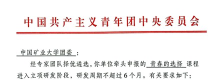 申报的全国大中学校重点建设团课系列课程《青春的选择》获批进入立项研发阶段。