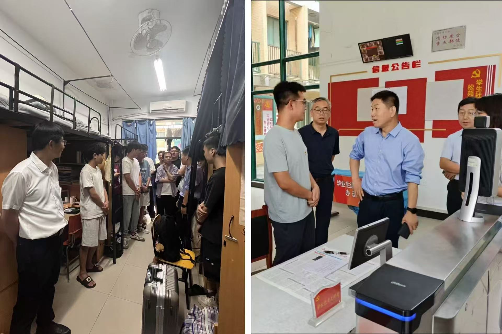 党委书记王守刚、院长仲晓星、党委副书记于基伯、副院长朱晓东、副院长王利军与毕业班辅导员深入毕业生宿舍,与即将离校的学子们亲切交流,送上毕业祝福与殷切期望。