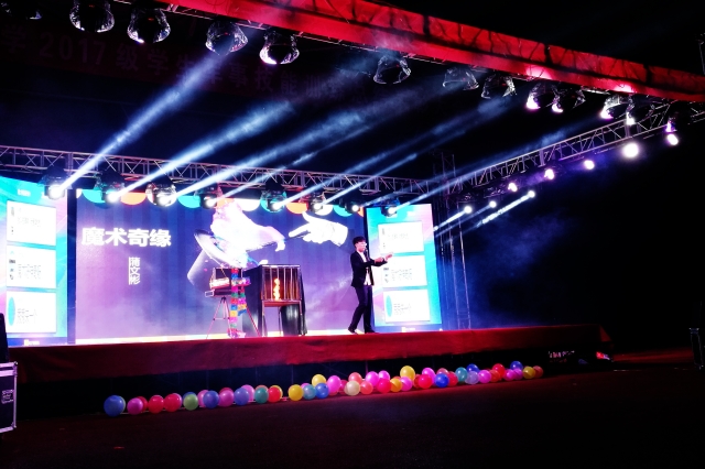 整场晚会由“文艺荟萃”、“妙音奇舞”和“魔法音乐”三个部分构成,歌曲、舞蹈、小品、相声、魔术、朗诵和乐器演奏等14个精彩纷呈的节目共同为在场的观众奉献了一场精彩的视听盛宴。晚会上,不仅有校十佳歌手的倾情演唱、文艺社团或是激情四射或是曼妙悠扬的舞姿、幽默风趣的相声、扣人心弦的魔术和笑点频出的小品,更有2017级新生带来的西洋乐器演奏、风格各异的演唱、饱含深情的朗诵和充满梦想和期望的合唱。