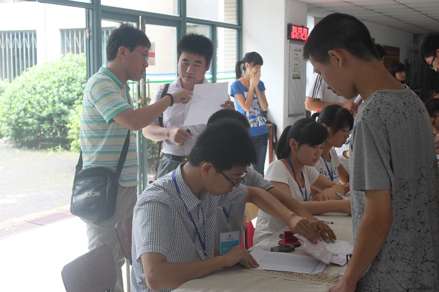 党委副书记张磊不时地视察工作,并为贫困新生写助学贷款的申请证明。孙婉老师以及2012级热能1班班主任王珂老师、2012级热能3班班主任昝小舒也在旁协助。这都充分地体现了老师们对迎新工作的关注及对新生的关怀。