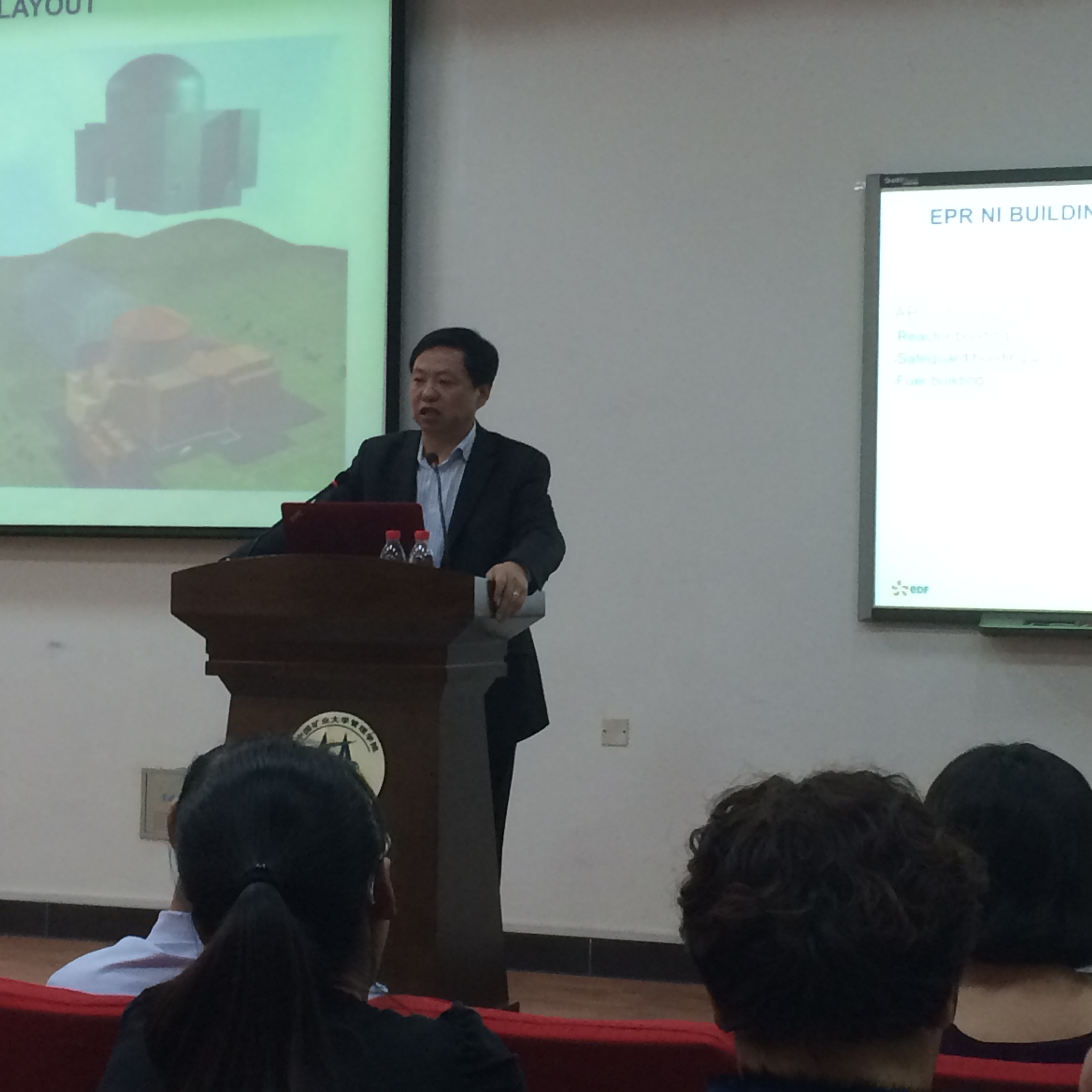 对陈国飞教授的到来表示热烈欢迎。陈国飞教授为同学们简单介绍了一下法国电力集团,在轻松的氛围中展开了报告会。陈国飞先生在发电,输配电,客户端的能源综合管理等领域积累了丰富的经验,尤其是新能源的应用及生态城项目研发管理经验。本次报告陈国飞教授针对当前的能源利用现状,创新性的对火电、核电,水电领域数字仿真等方面提出了详细的见解。并通过一系列的分析结果与实验数据,简单介绍了输配电与智能电网方面的知识,并对当前的能源导向也提及了自己的看法。 最后,陈国飞教授与在场师生积极交流,根据自己的研究和经验详细解答了观众的疑问并给予了一定的指导建议。通过本次报告会,让在场的师生了解到更多关于核电和输配电方面的知识,引发了同学们深刻的思考。陈国飞教授兼具前沿性和创新性的报告赢得了现场师生的阵阵掌声。