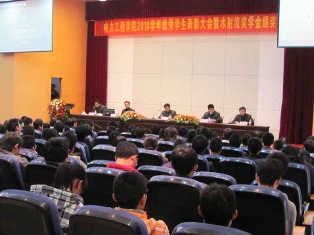 12月3日下午四点,成人游戏 在信电报告厅隆重举行了2009-2010学年先进集体、优秀学生表彰大会暨水射流奖学金颁奖仪式。大会由成人游戏 党总支副书记张磊主持,成人游戏 党总支书记李意民、院长助理菅丛光、浩通公司总经理、电力成人游戏 兼职硕士生导师夏军,动力系主任宋正昶出席了大会。成人游戏 班主任代表、全体辅导员及07、08、09级全体学生参加了大会。