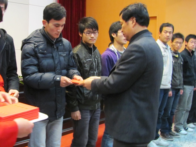 张书记首先向同学们介绍了出席此次大会的领导及嘉宾。大会在庄严的国歌声中正式拉开帷幕。院长助理菅丛光宣读了院先进班集体、星级宿舍、院优秀学生及单项奖的表彰名单。随后,党总支李意民书记,院长助理菅丛光及动力系主任宋正昶分别为获奖班级、宿舍及学生代表颁奖。动力系主任宋正昶宣读了成人游戏 首届水射流奖学金评选的相关细则及获得此项奖学金的学生名单和团队。紧接着,由成人游戏 党总支书记李意民教授首先为先进集体代表和优秀学生代表颁发荣誉证书,水射流奖学金资助人夏军、院长助理菅丛光分别为获得“水射流奖学金”一等奖、二等奖和三等奖的学生、团队代表颁奖。颁奖结束后,来自热能08-1班王海名和热能09-4班张秀海分别代表院优秀学生和水射流奖学金获得者发言。