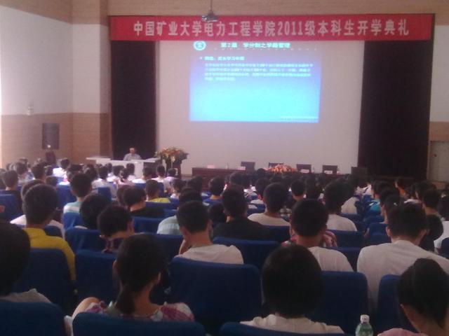 2011级本科生开学典礼。党委书记李意民,党委副书记兼行政副院长张磊,教学副院长郭楚文,动力系主任宋正昶,电力系统成人游戏所长陈昊,辅导员孙婉、曹海洋、弓海军、张昕喆,以及各班班主任出席了本次大会,全体11级新生参加。
