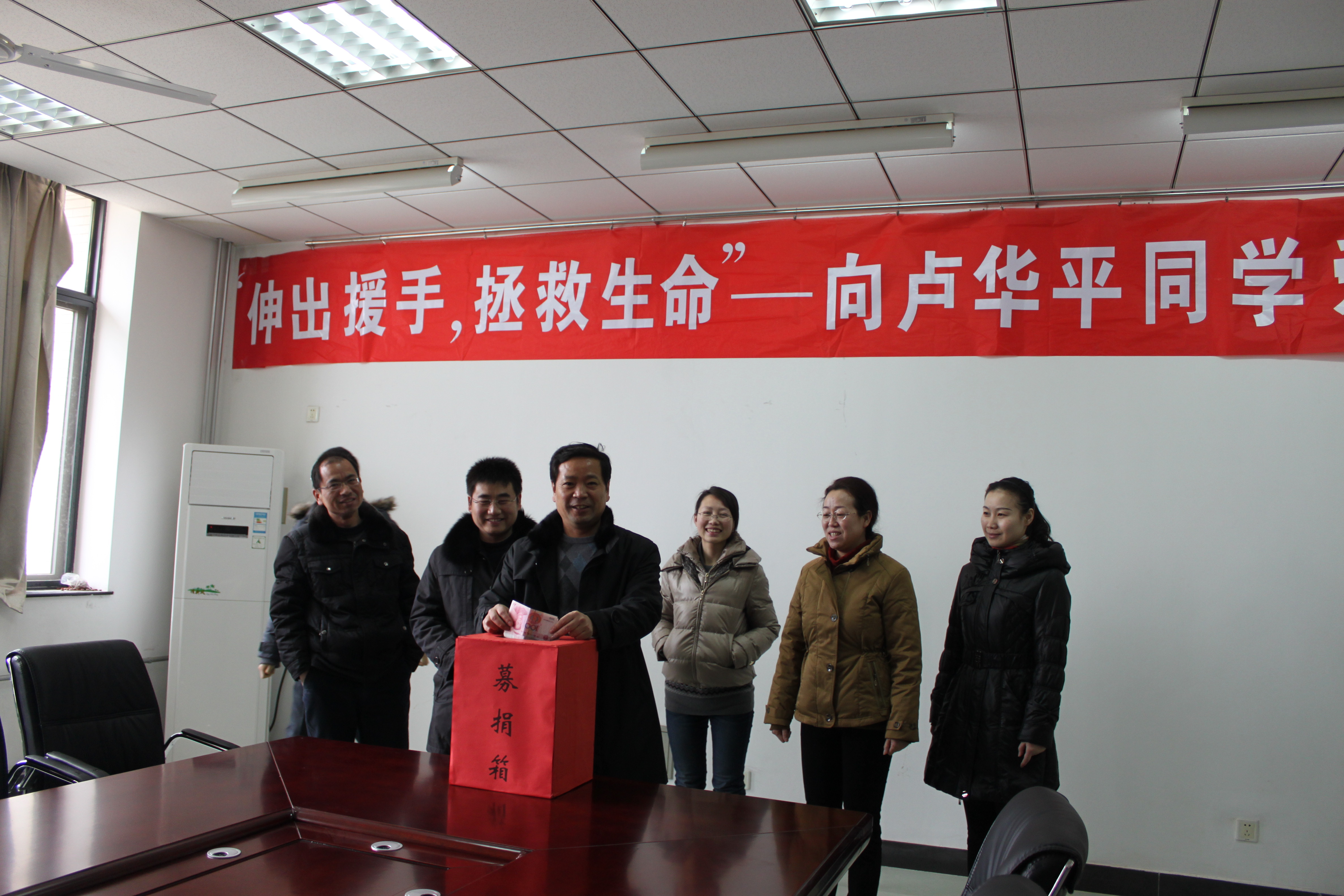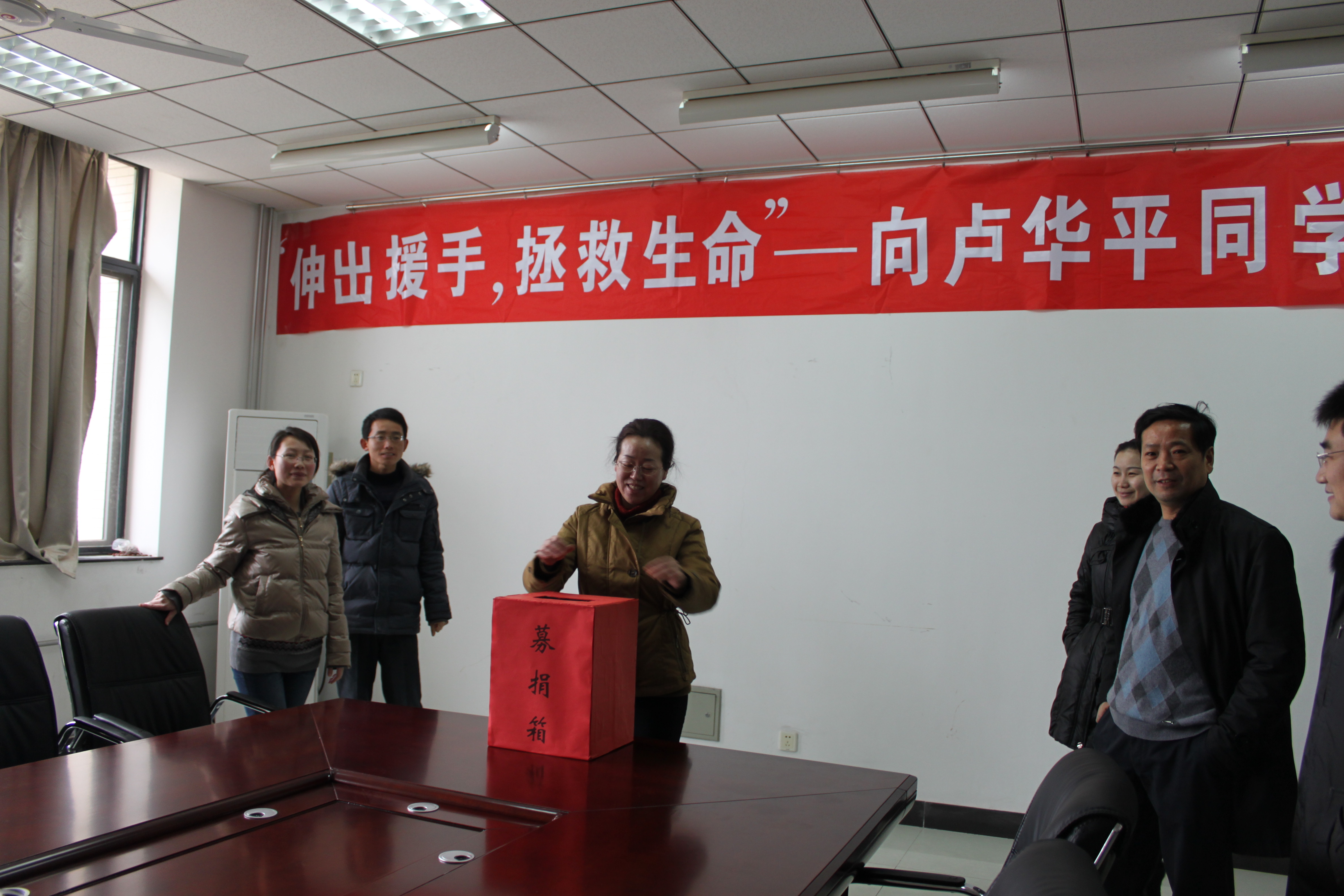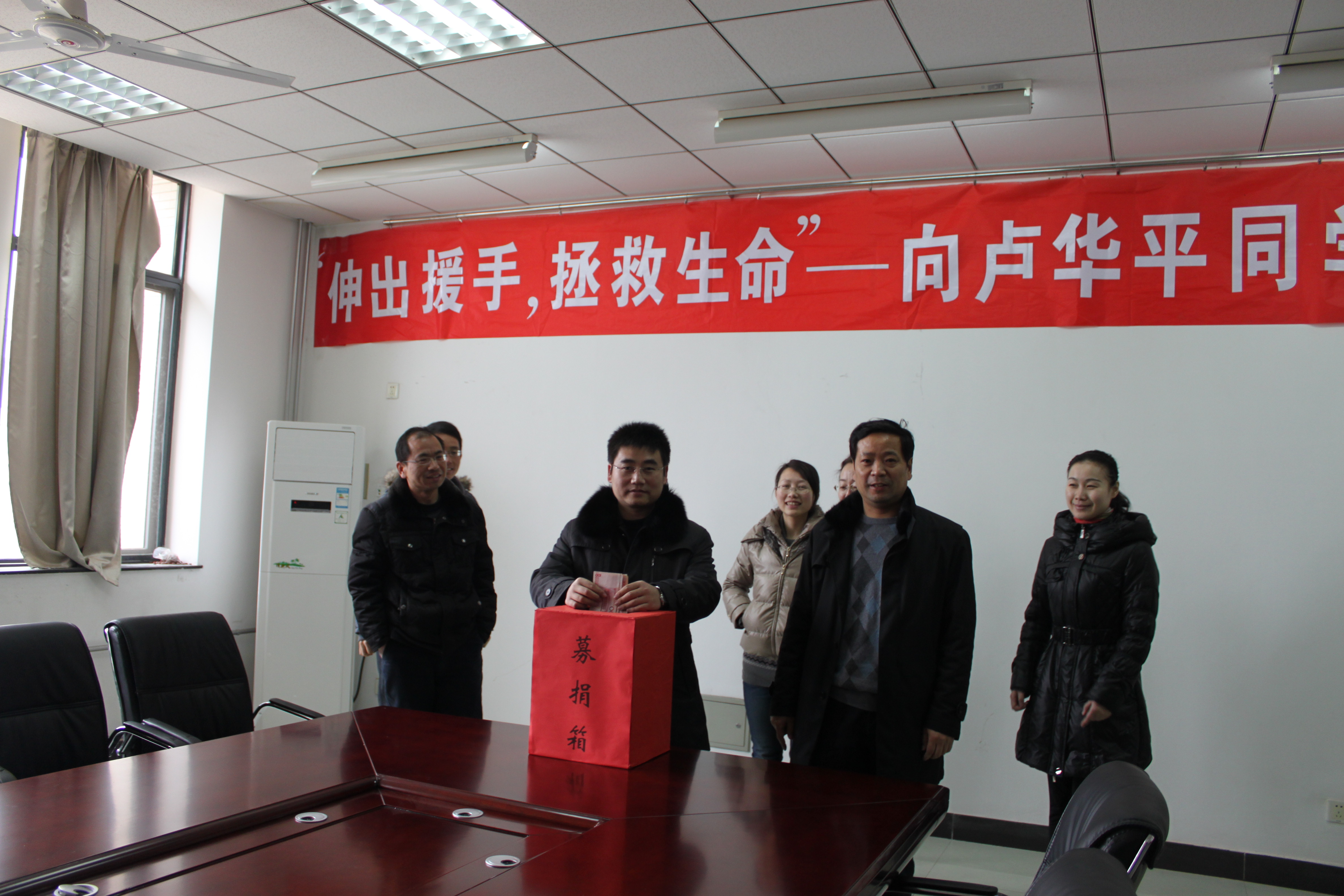 会议室举行了本次机关党支部的捐款,机关党支部共5人,截至发稿时捐爱心款2800元整。