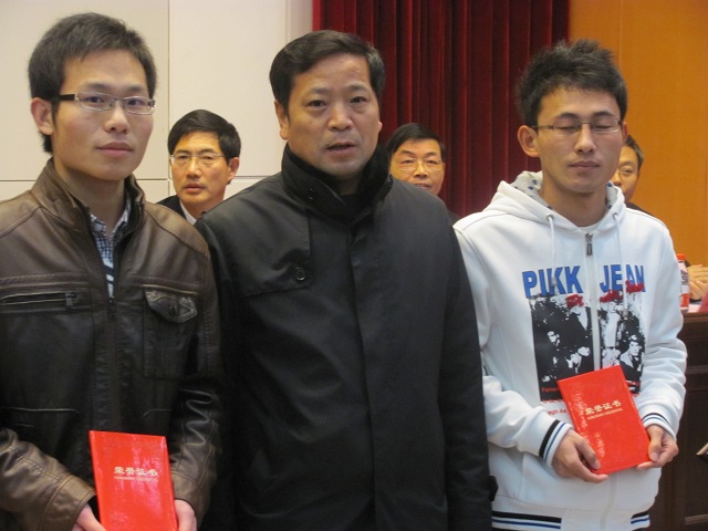 动力系主任宋正昶宣读了水射流奖学金获奖名单,并和徐州浩通公司总经理江山一起为奖学金获得者颁奖。