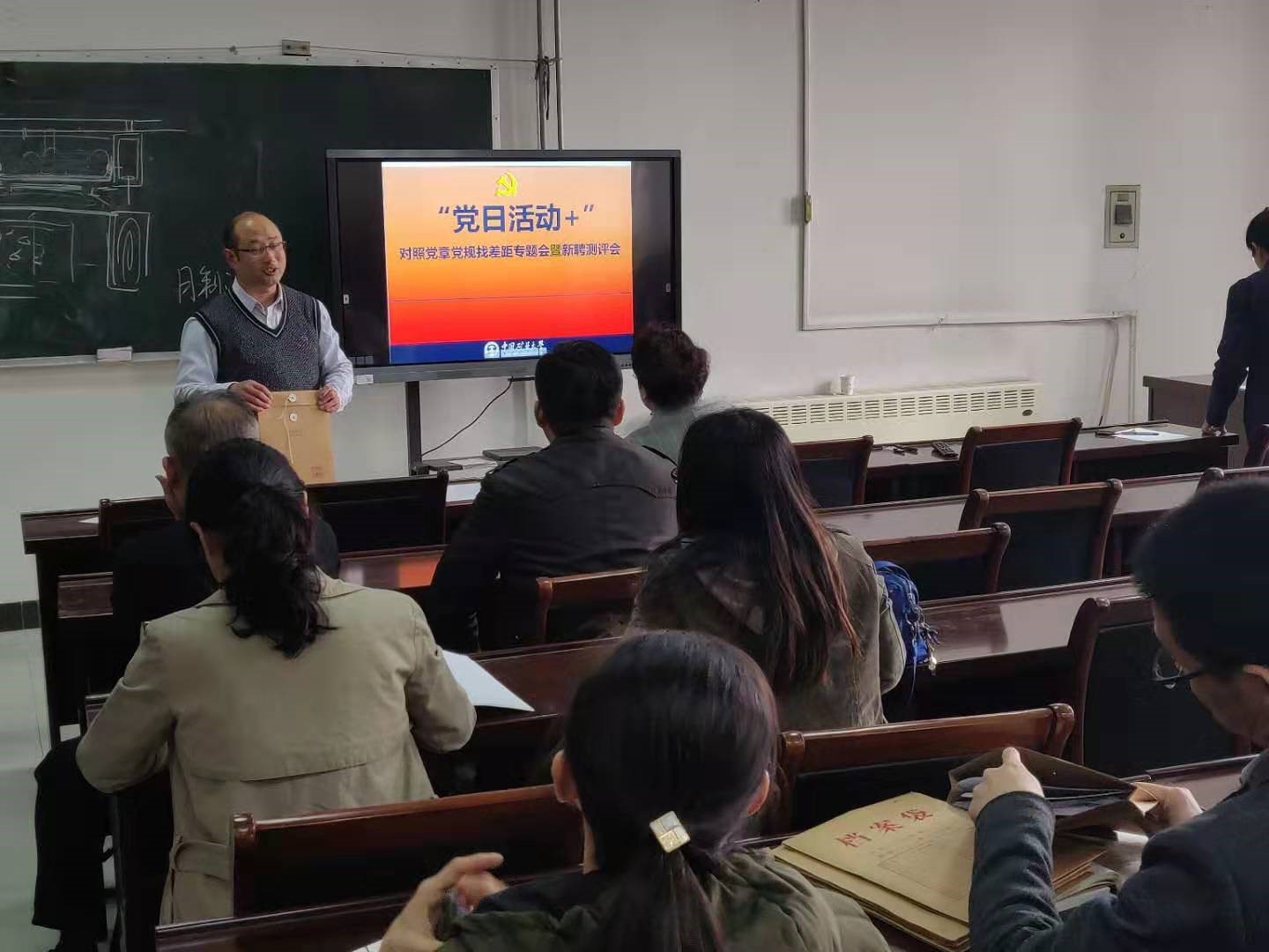 会议第二部分,院教师第四党支部书记兼系副主任张保生主持,全系教师共同进行了对照党章党规找差距的专题会,专题会首先由张保生老师说明了对照党章党规找差距活动的具体要求,并从党章、准则和条例三个方面指出了党员群体人员会出现的若干可能问题,其提出希望并要求各位党员老师能够切实从实际出发,将此次活动作为提升个人思想和能力水平的契机,认真发现和反思自身存在的问题,并提出可行的整改措施。