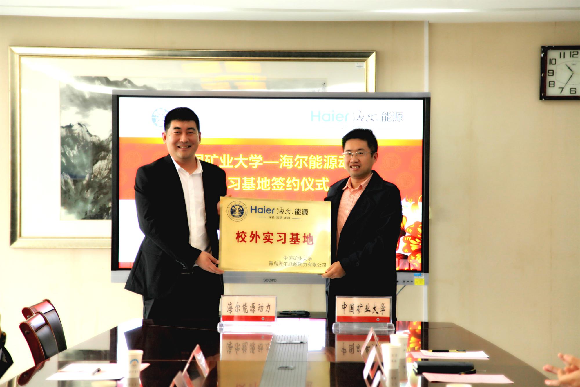 规模、学科发展及学生毕业去向进行介绍。接下来,柴纪强总经理对海尔公司的发展、企业成就、人才需求等方面进行介绍,校友党贇飞对学生的实习情况进行介绍,并表示将继续努力做好实习基地工作,打造精品实习基地。之后,郭楚文院长与柴纪强总经理签署了共建校级实习基地协议,徐瑞东副院长与邵凯副总经理共同为实习基地揭牌。最后,实习师生分享了暑期实习的体会和感想。