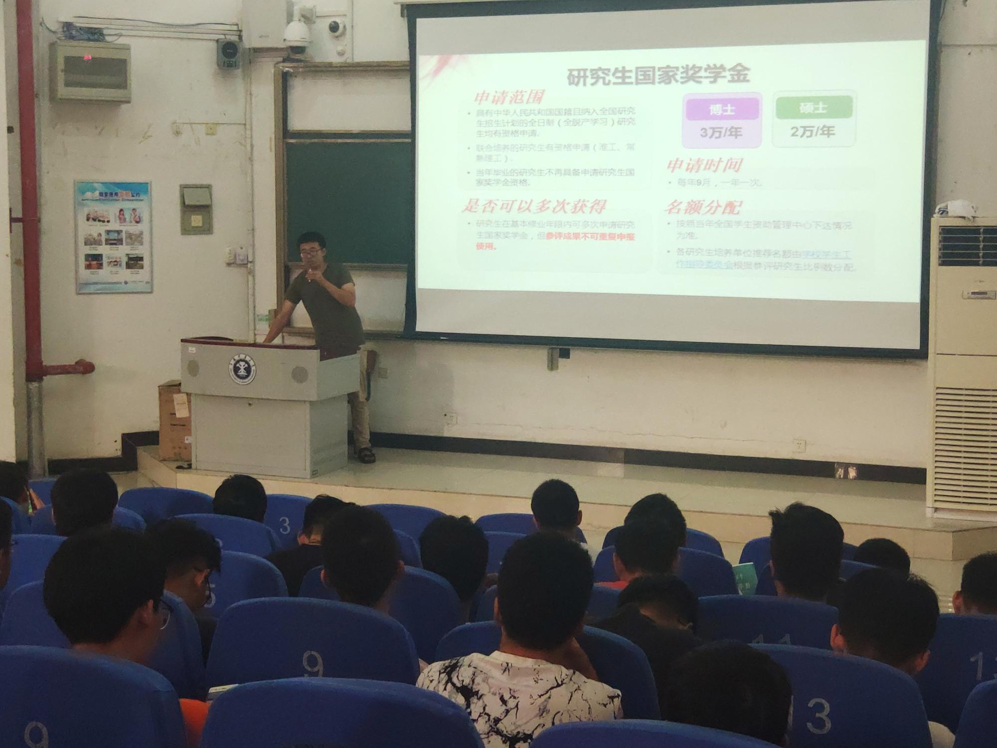 辅导员郭凯强为2019级研究生介绍各项奖助政策