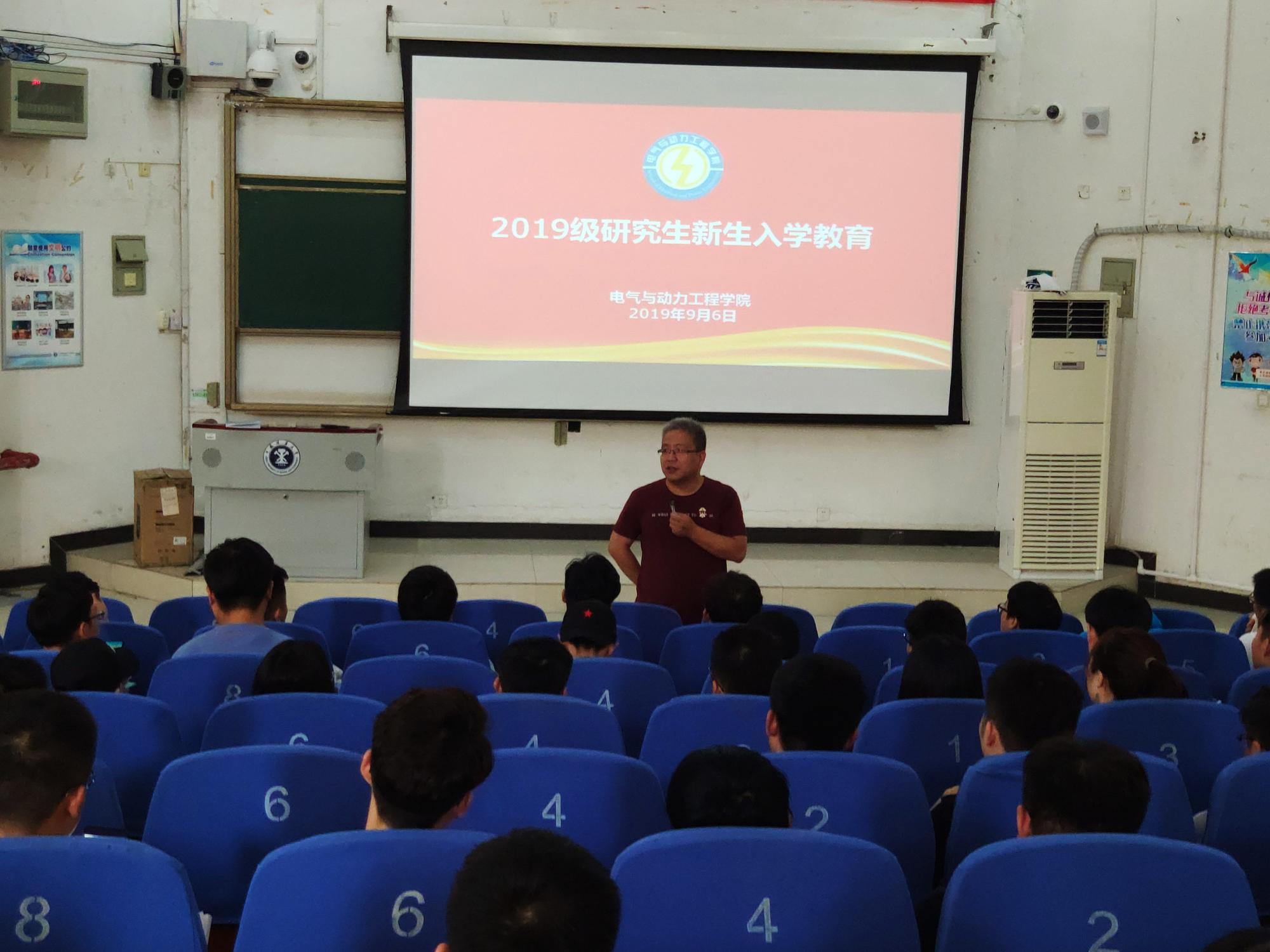 科研、研究生副院长韩东太为2019级研究生做入学教育报告
